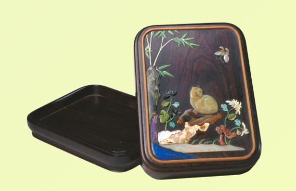 Rectangular red sandalwood box embedded with gem cat and butterfly motifs, Qing Dynasty [Photo/Palace Museum official WeChat account]