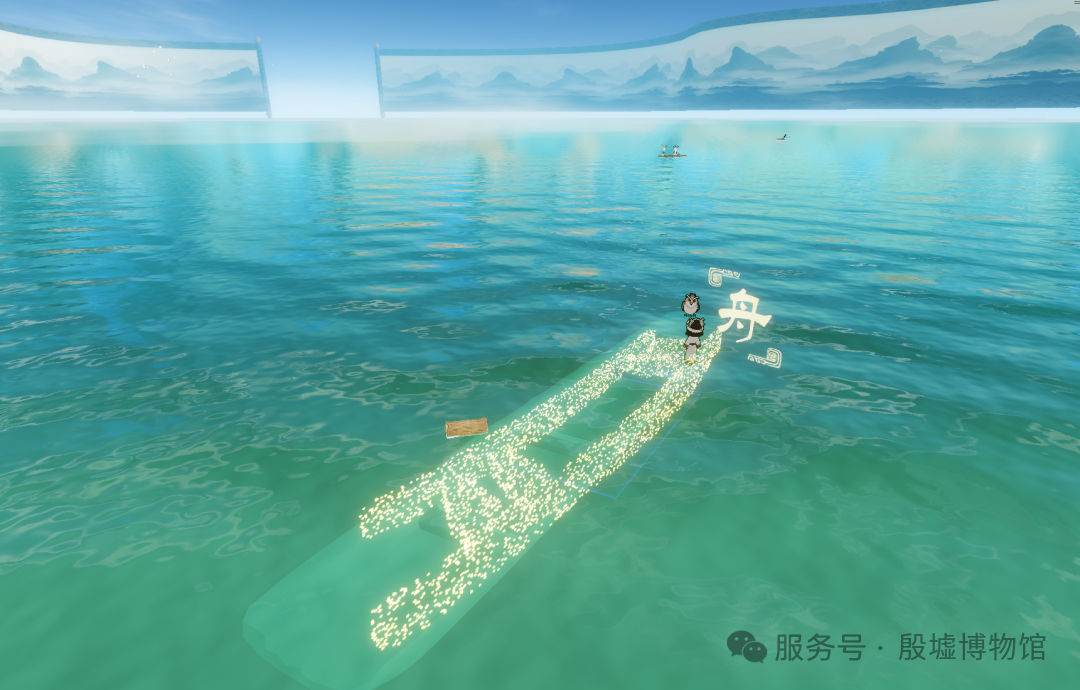 A scene from the digital exhibition demonstrates the oracle bone script of the Chinese character for "boat" (