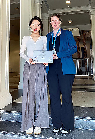 Hu Xuan (left) receives a collection certificate from Wereldmuseum Rotterdam.