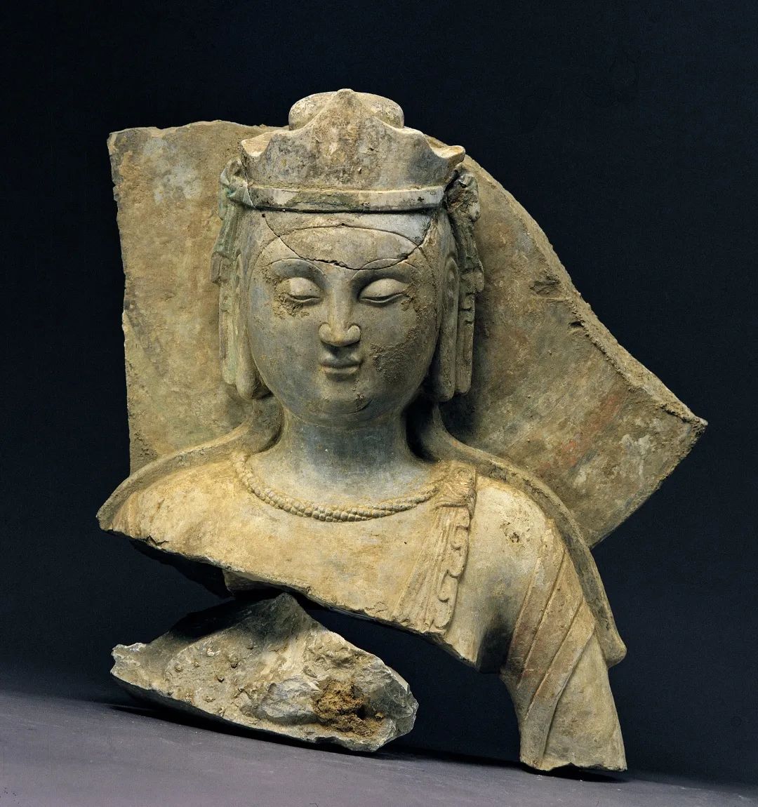 Painted and stone-carved bodhisattva head, Northern Qi Dynasty [Photo/Ordos Museum official WeChat account]