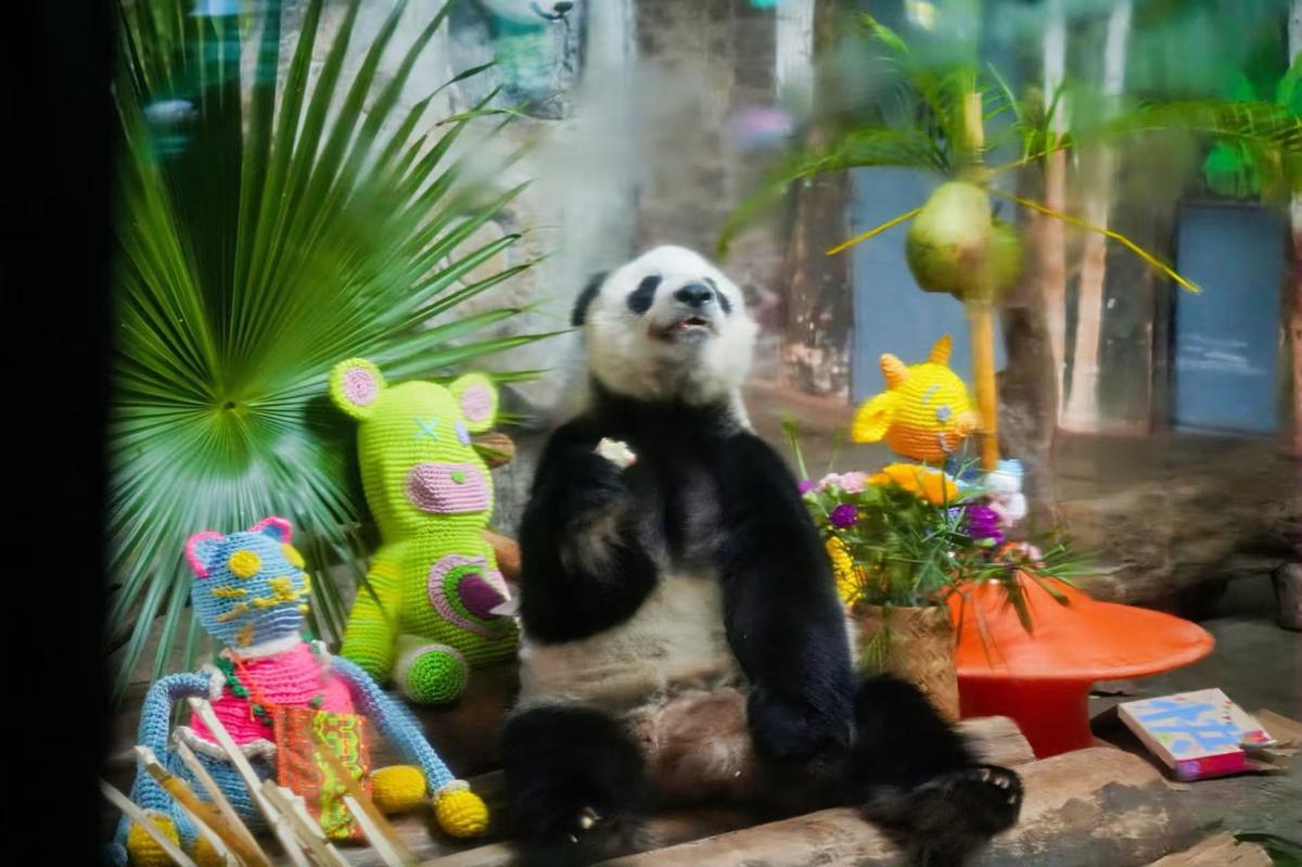 The Hainan Tropical Wildlife Park and Botanical Garden in Haikou, Hainan province, celebrated the 12th birthday of the giant pandas Gonggong and Shunshun on Sunday, marking their seventh year on the island with a lively festival blending conservation awareness, local culture, and interactive fan activities.