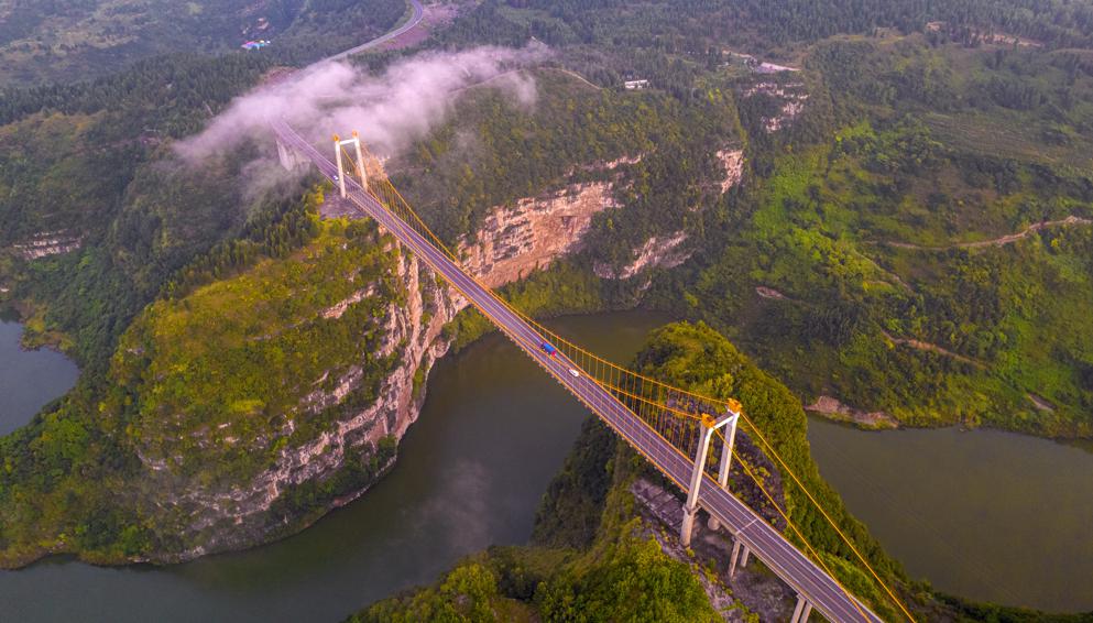 In August, the Xixi River Bridge in Southwest China's Guizhou province presented a postcard-worthy scene as it spanned the river and canyon.