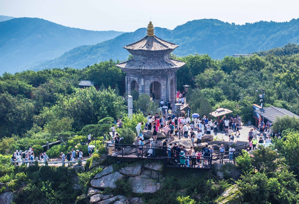 As the summer vacation draws to a close, Huaguo Mountain scenic area in Lianyungang, Jiangsu province, welcomed a tourism peak on Aug 20. Visitors came to hike, enjoy the cool air, and relax in the refreshing mountain scenery.