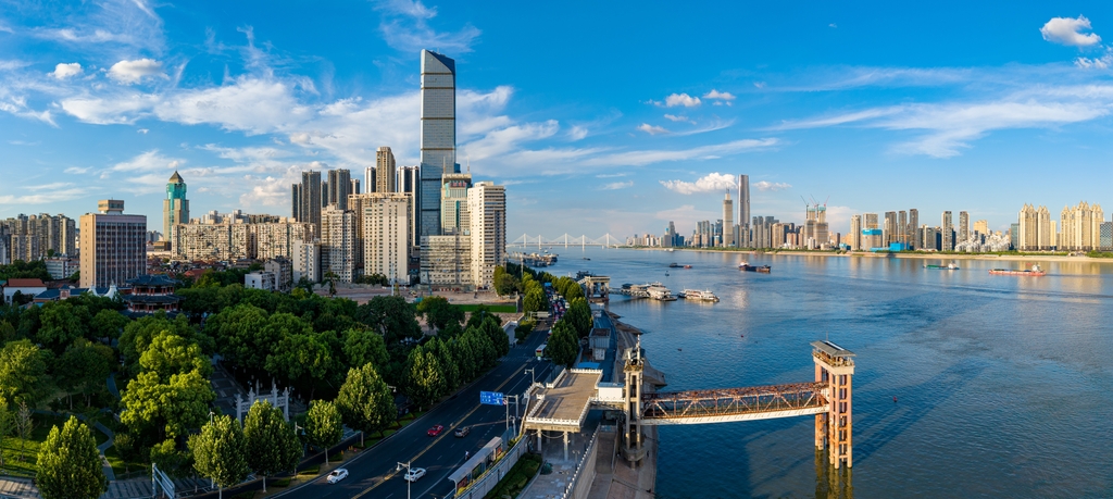 In Wuhan, Hubei province, the weather remains hot, with clear skies casting a bright glow over the rippling blue waters of the Yangtze River, showcasing the city’s unique summer charm.