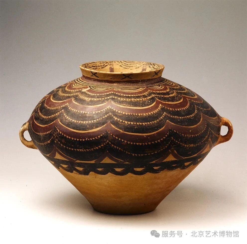 Painted pottery jar with multi-layered interlocking arc and zigzag motifs, from the collection of Gansu Provincial Museum [Photo/Beijing Art Museum official WeChat account]