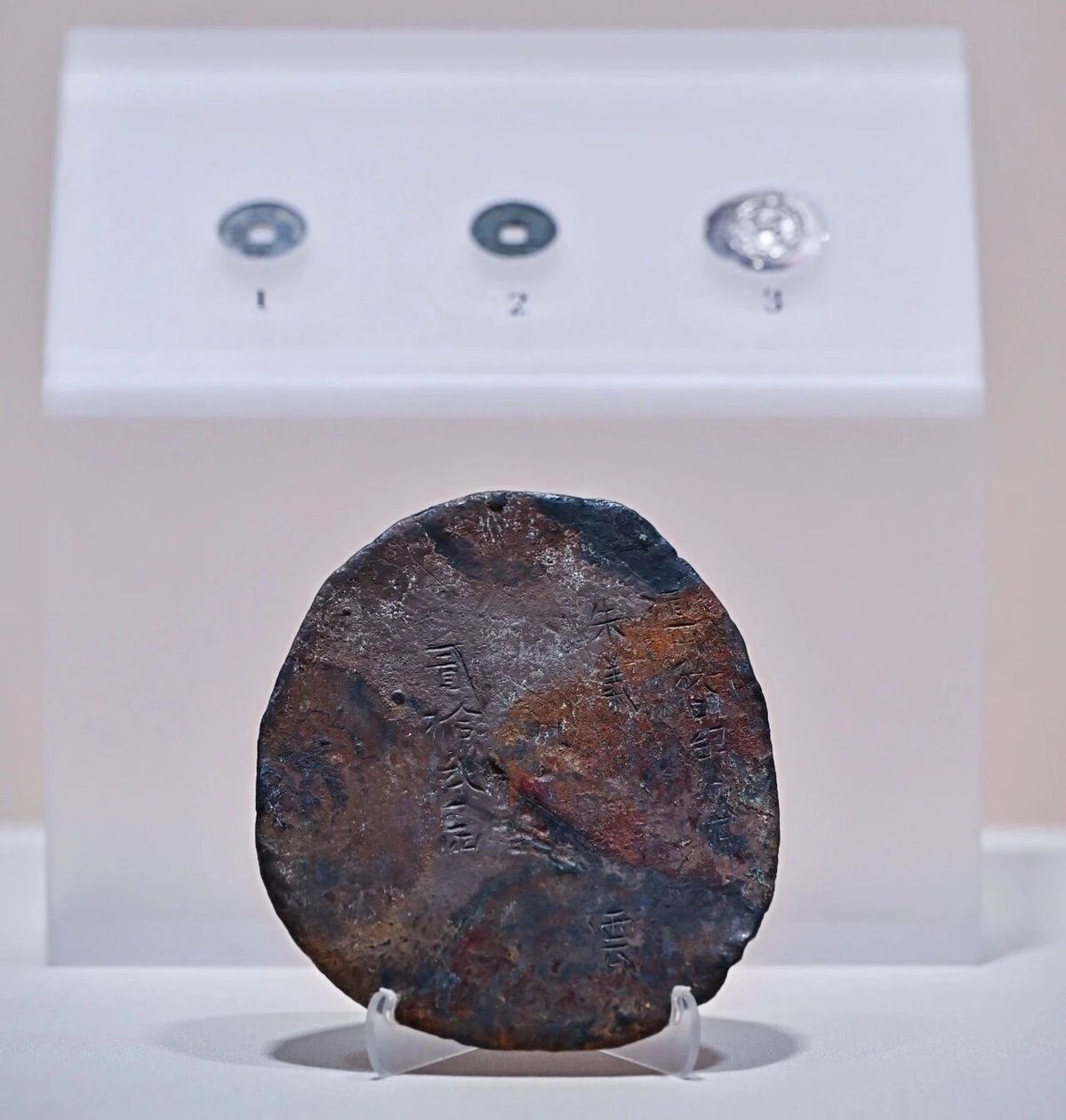 Silver disc inscribed with the name of Yang Guozhong (700-756), a Tang Dynasty official and cousin of Yang Yuhuan (719-756), favorite consort of the Xuanzong Emperor (r. 712-756) [Photo/Chengdu Du Fu Thatched Cottage Museum official WeChat account]