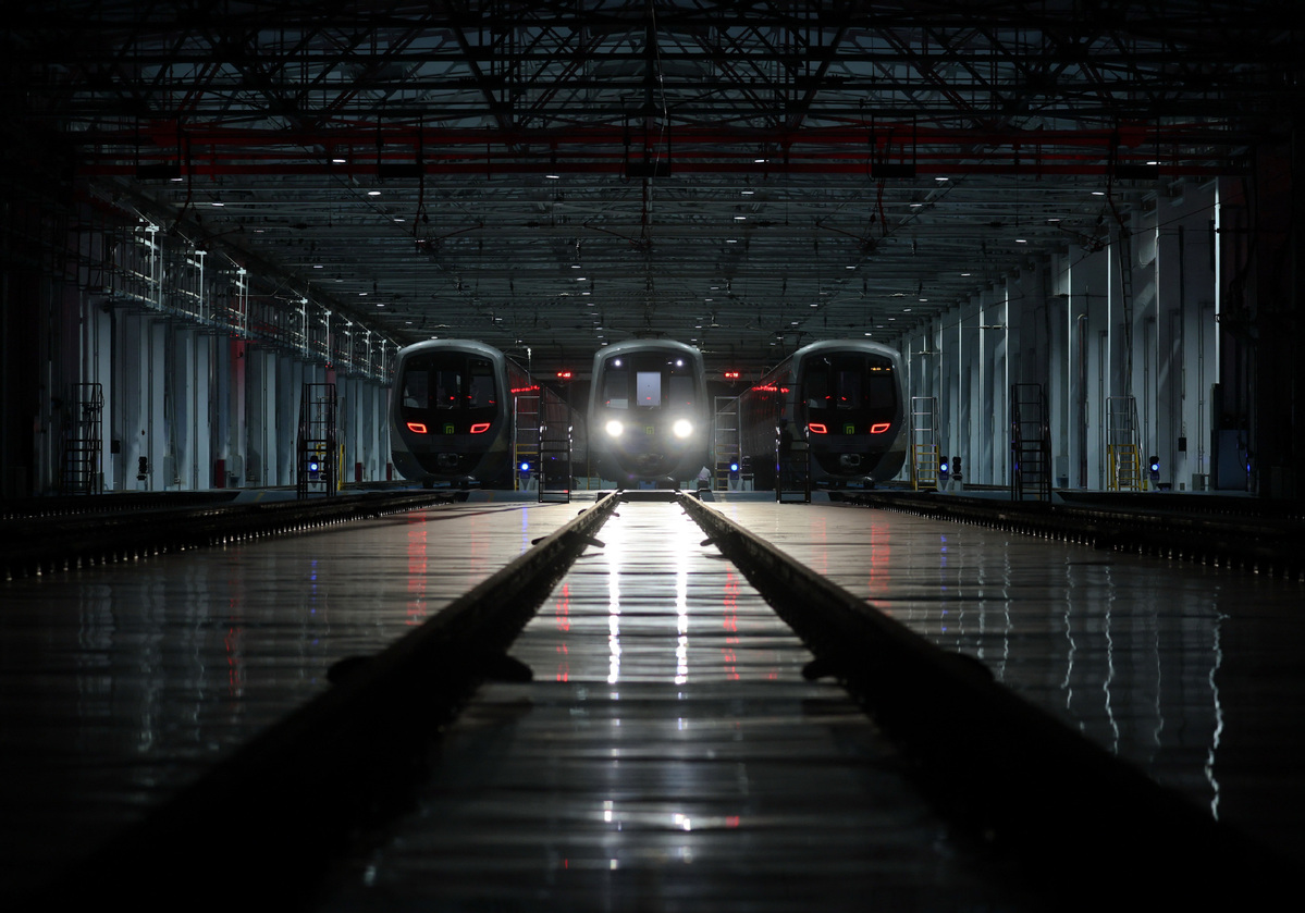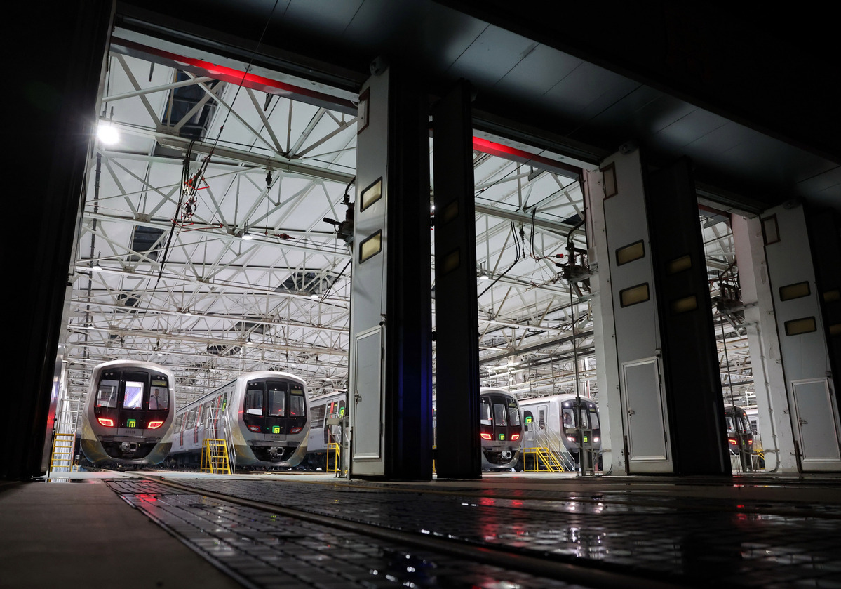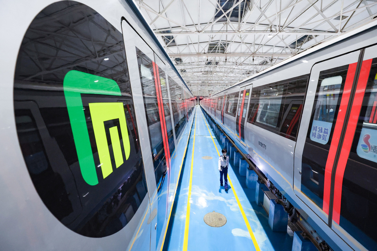 A staff member inspects trains before operation in Shijiazhuang, North China's Hebei province, Sept 9, 2025. As of the first half of 2025, the Shijiazhuang Metro has operated a total of 2.0083 million train trips, safely transporting 942 million passengers. Initiated in June 2017, the city's metro system now stretches 78.2 kilometers with 60 stations in service. [Photo/Xinhua]