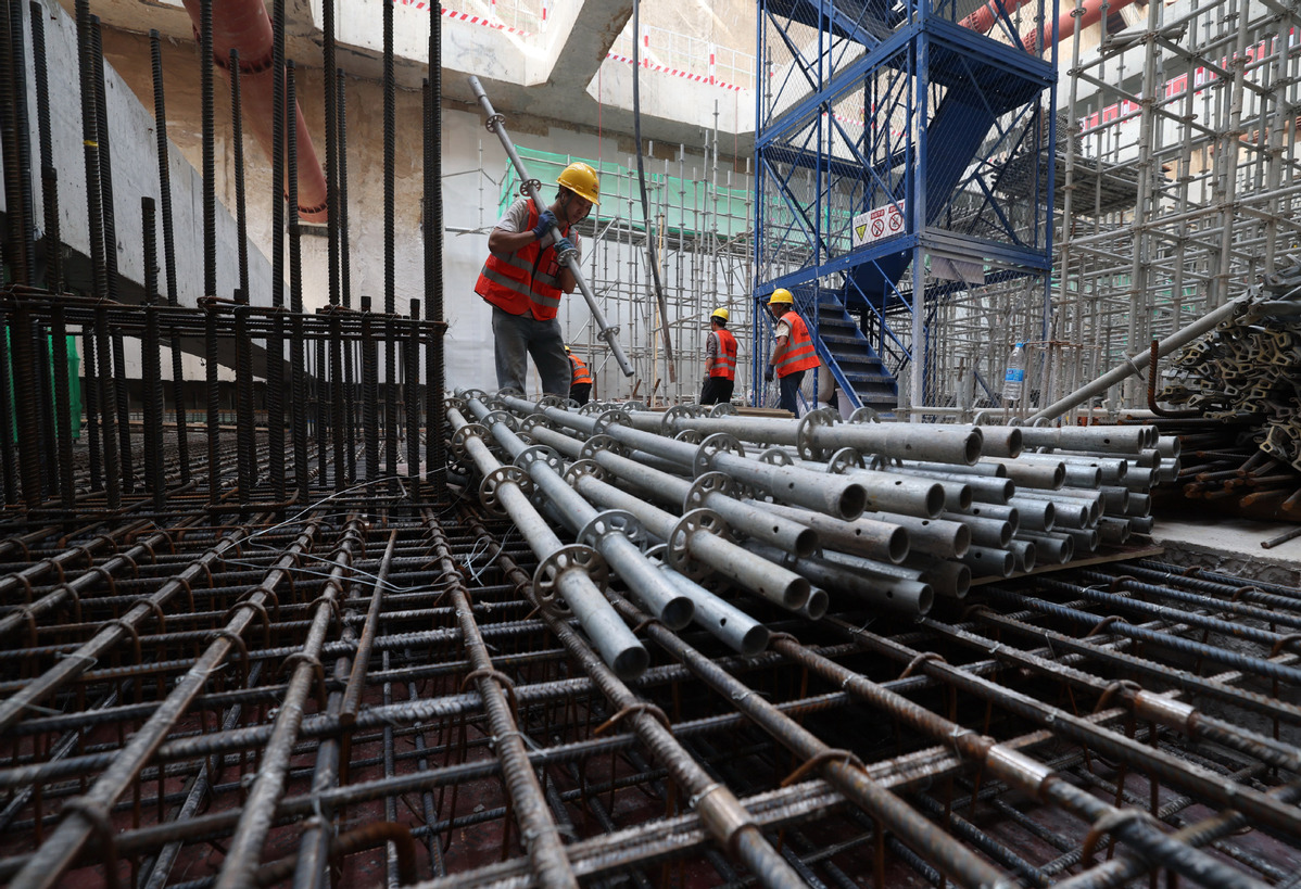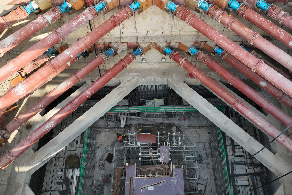 Constructors work at the construction site of a metro station in Shijiazhuang, North China's Hebei province, Sept 7, 2025. [Photo/Xinhua]
