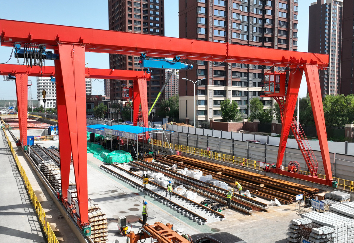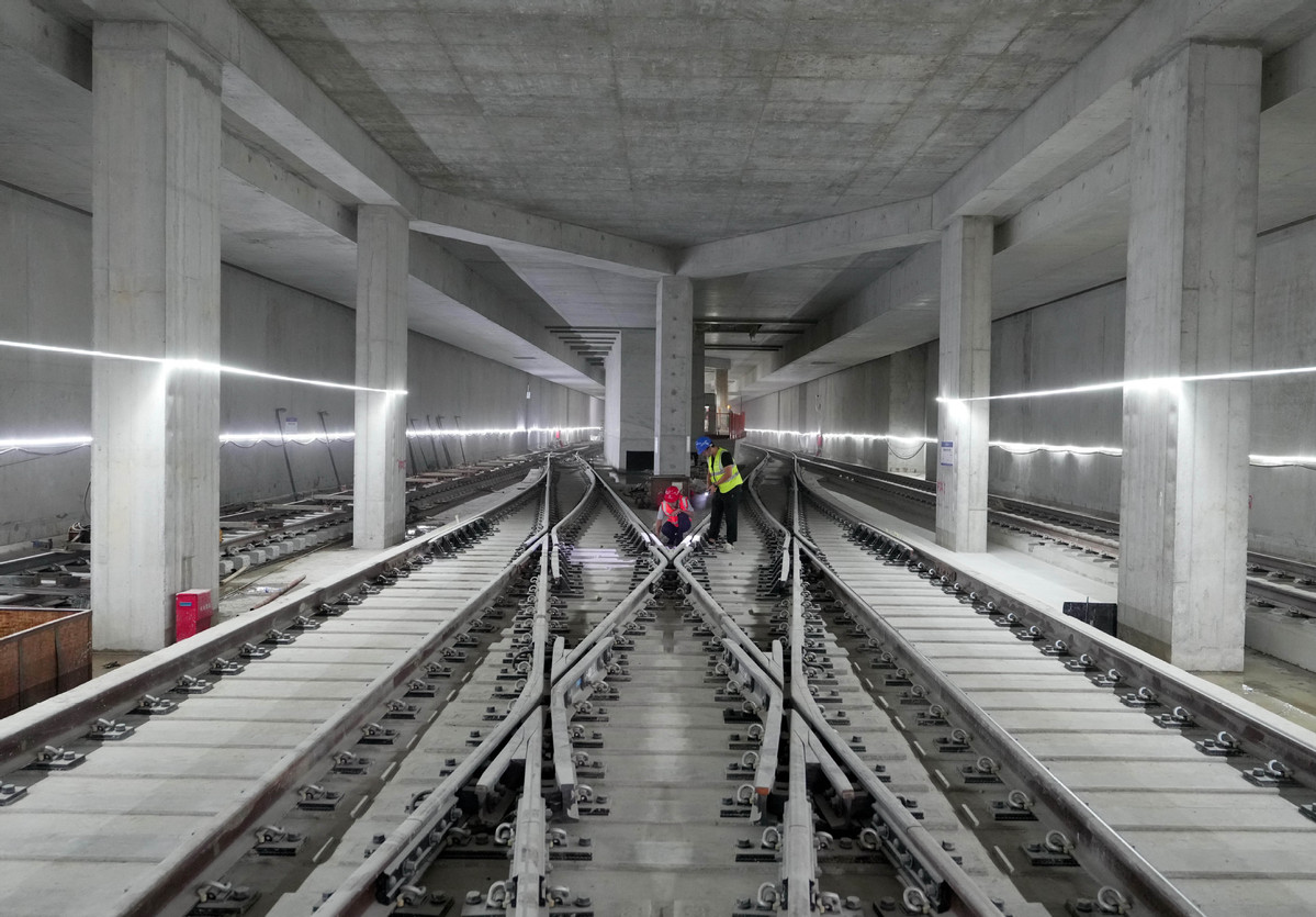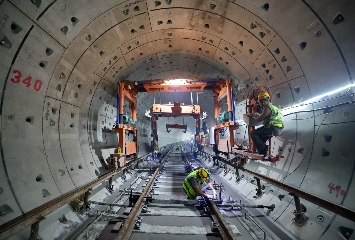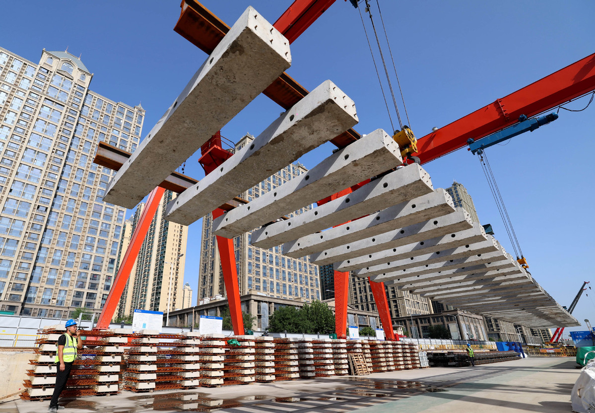 Constructors work at the construction site of a metro station in Shijiazhuang, North China's Hebei province, Sept 9, 2025. [Photo/Xinhua]