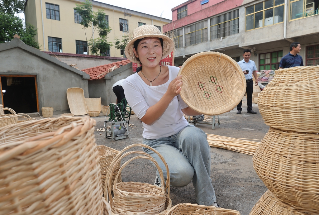 A visitor picks the willow weaving products in Gurao town. [Photo/IC]