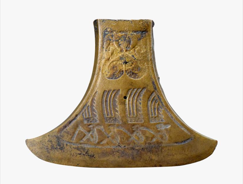 (axe-head) with "immortals racing in boats" motifs, Warring States Period (475-221 BC) [Photo/China Port Museum official WeChat account]