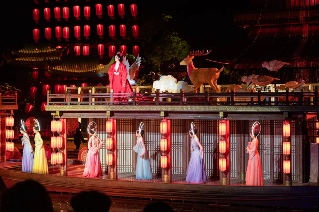 Every week from Tuesday to Saturday, Destined Love of the Fairy Couple unfolds with dazzling lights, drifting mists, and immersive stage effects. Witness the mortal-fairy romance before Moyun Pavilion, feel the call of destiny beneath blooming twin lotuses, and journey through vivid scenes of salt-making life, Lantern Festival encounters, and matchmaking under the locust tree. With ingenious design and superb performances, every moment draws audiences across a thousand years into an unforgettable celebration of eternal love.