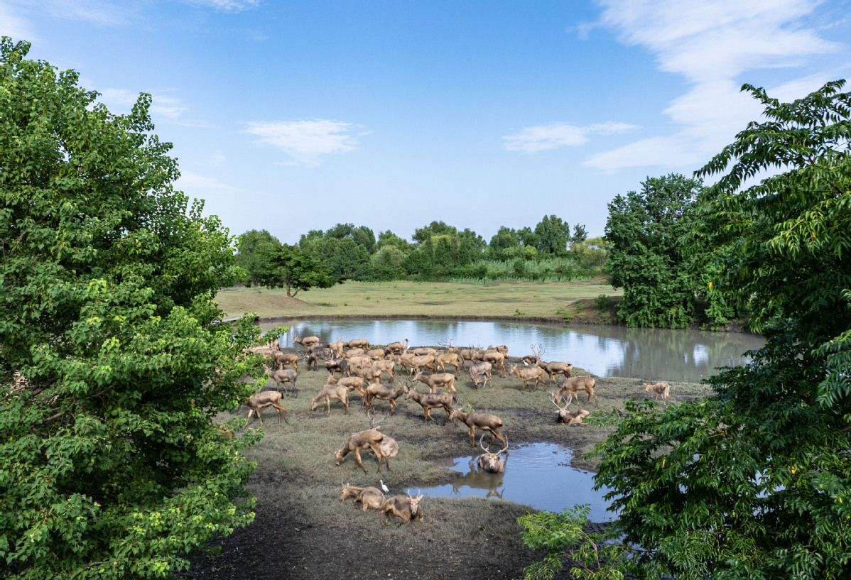 Qinhu National Wetland Park in Jiangsu, East China is a perfect autumn retreat. This protected wetland has become a haven for wildlife, where you can see herds of wild deer grazing and frolicking in a peaceful, natural setting.