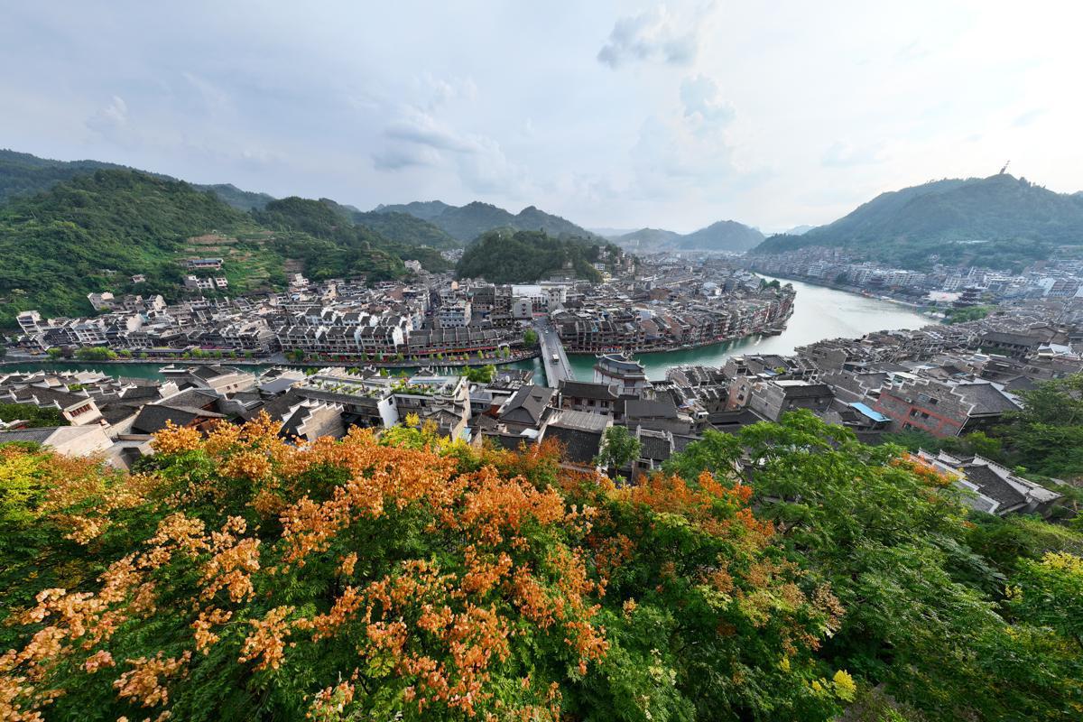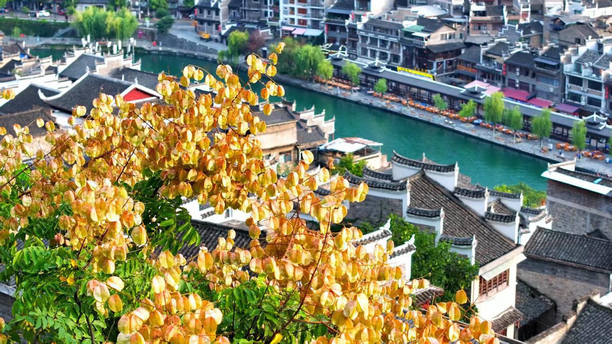 As autumn arrives, the hillsides around Zhenyuan Ancient Town in Guizhou province are blanketed with golden rain trees at peak bloom.