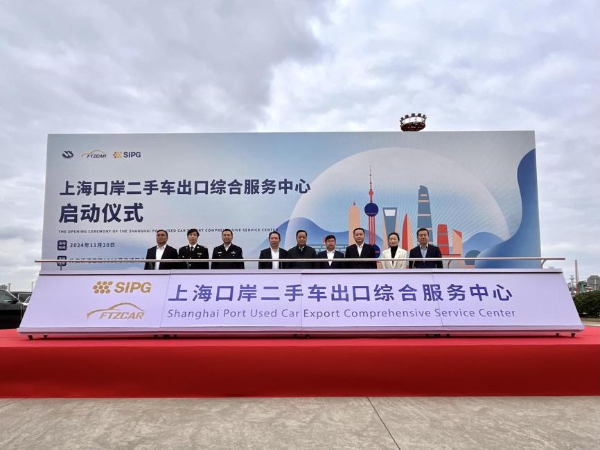 The opening ceremony of the Shanghai Port Used Car Export Comprehensive Service Center takes place at the Shanghai Haitong International Automotive Terminal on Nov 20. [Photo by Li Junfeng /chinadaily.com.cn]