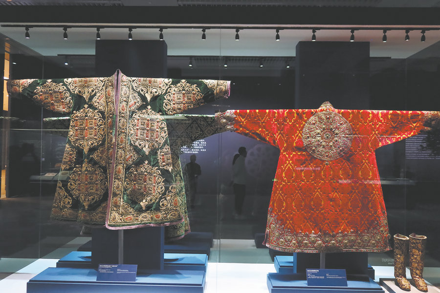 Costumes from Uzbekistan on show. Collections from both the State Museum of History of Uzbekistan and the State Museum of Arts of Uzbekistan are on display at the Beijing exhibition. JIANG DONG/CHINA DAILY