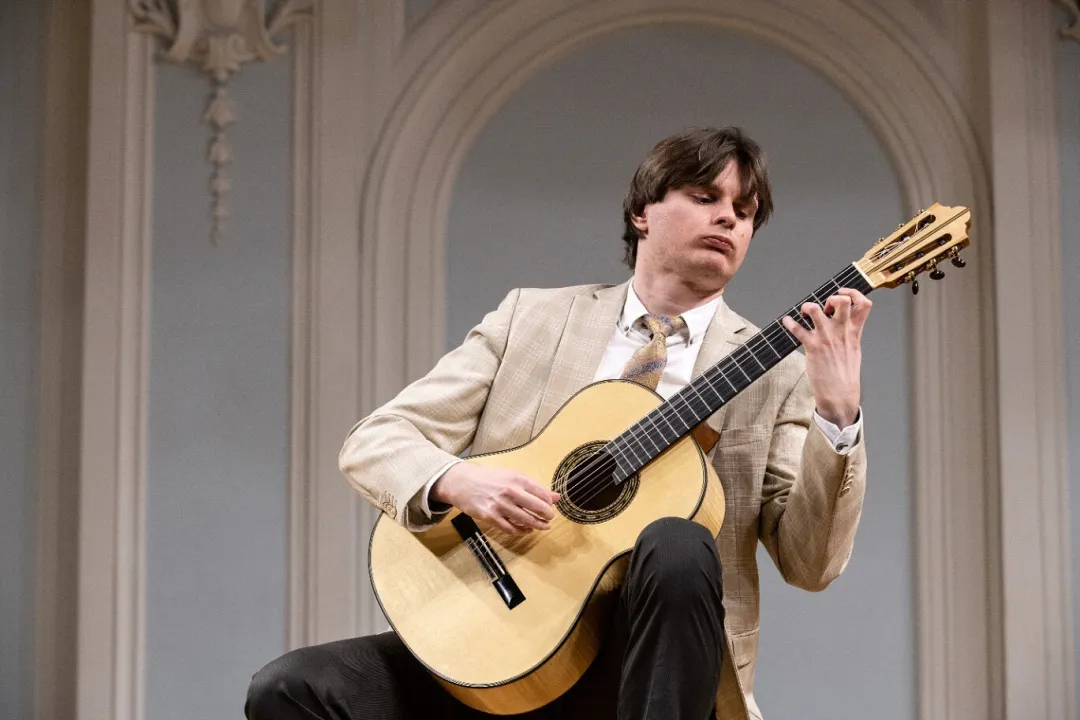 A performance photo of guitar virtuoso Anton Baranov [Photo/Official WeChat account of Fujian Grand Theater]
