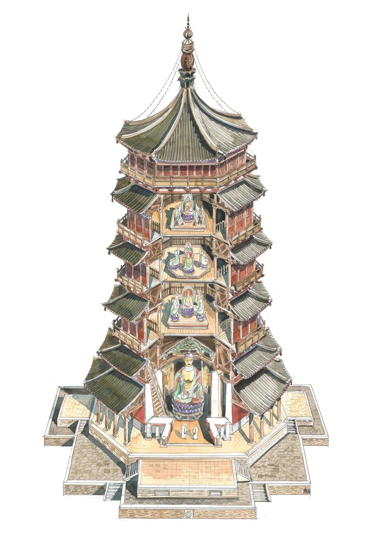 Deconstructed sectional view of the Sakyamuni Pagoda of Fogong Temple in Yingxian county [Photo/Shanxi Museum official WeChat account]