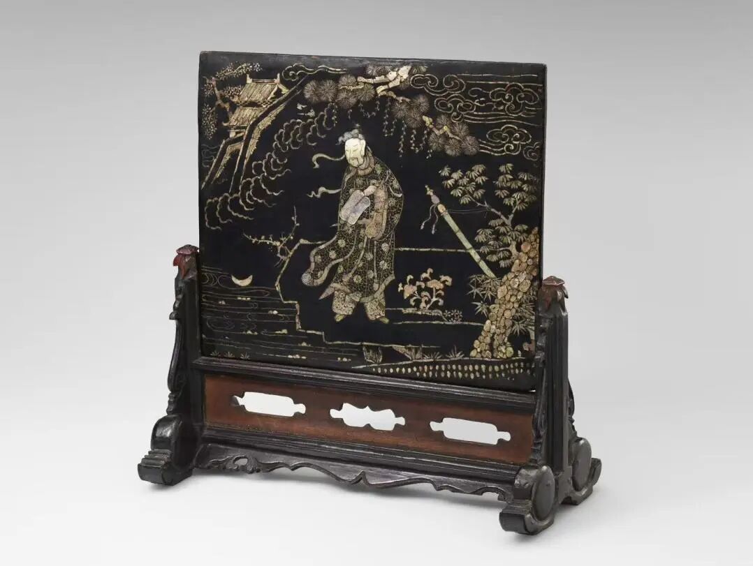 Black-lacquered screen embedded with mother-of-pearl depicting Lü Dongbin, a Daoist scholar, Yuan Dynasty, from the collection of the Asian Art Museum SF [Photo/Hubei Provincial Museum official WeChat account]
