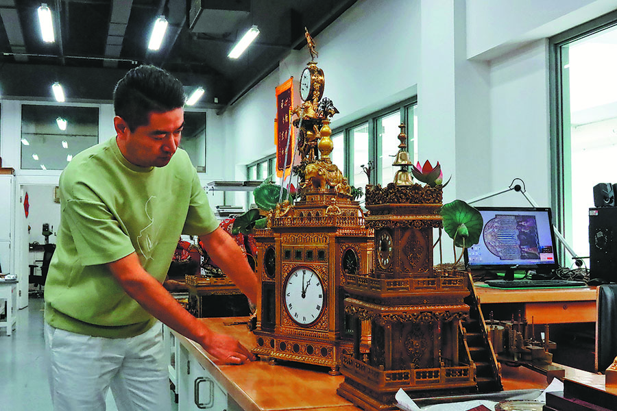 A restorer working on a timepiece on Sept 18. Most of the clocks come from the former royal inventory of the Qing Dynasty (1644-1911). [PHOTO BY JIANG DONG/CHINA DAILY]