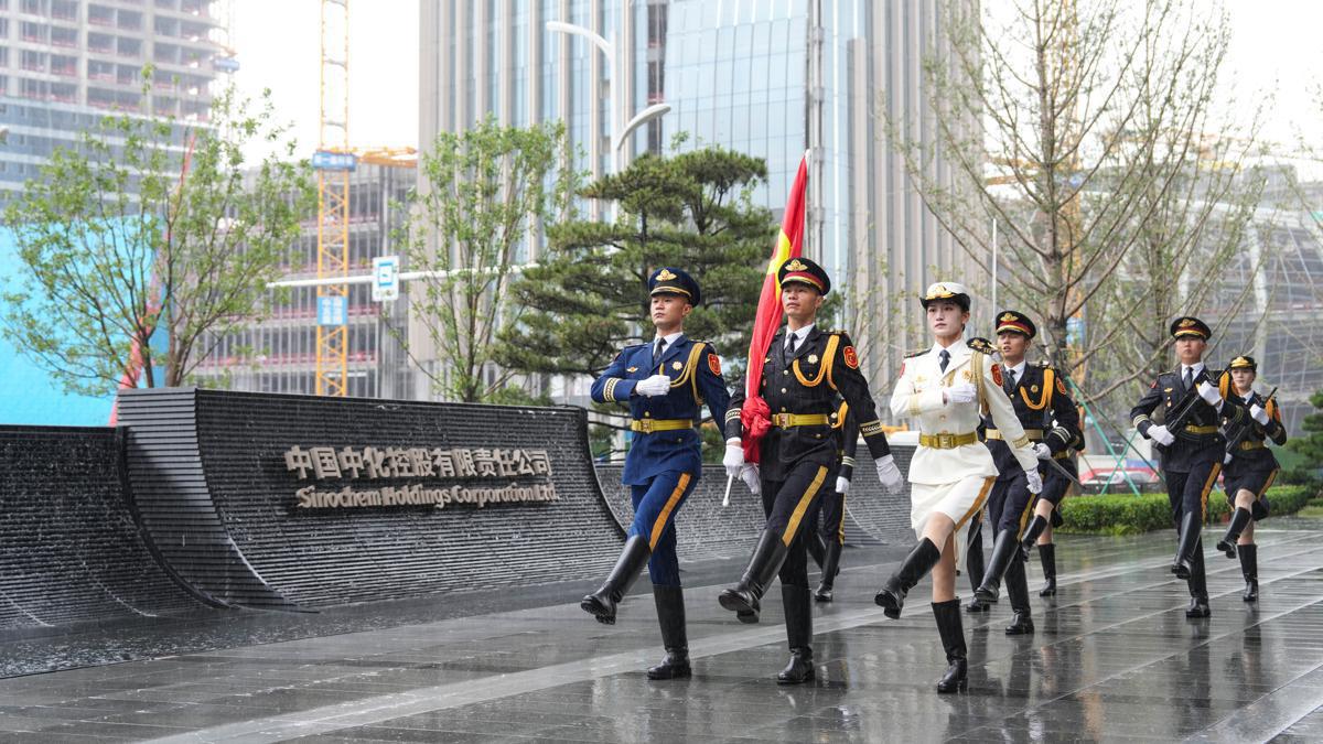 Sinochem Holdings holds a flag-raising ceremony at its new headquarters on Thursday in Xiong'an New Area, Hebei province. [Photo provided to chinadaily.com.cn]