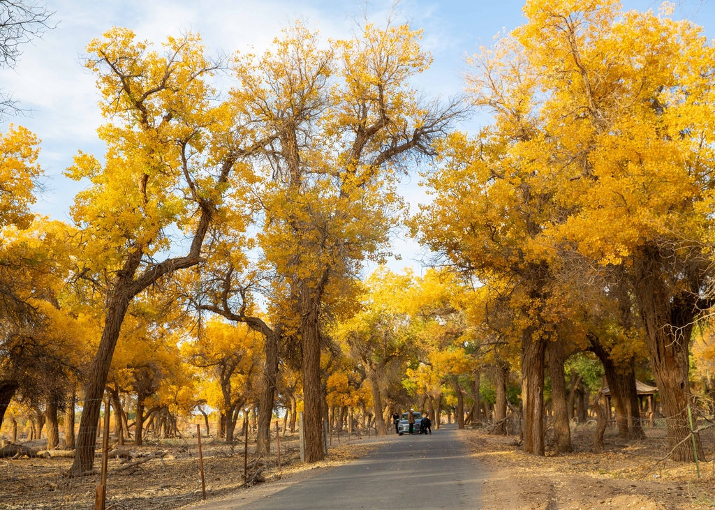 As autumn reaches its peak, the populus euphratica trees in the vast deserts of Ejine Banner, Inner Mongolia, have entered their best viewing season. The once-green leaves have turned golden, painting a magnificent landscape.