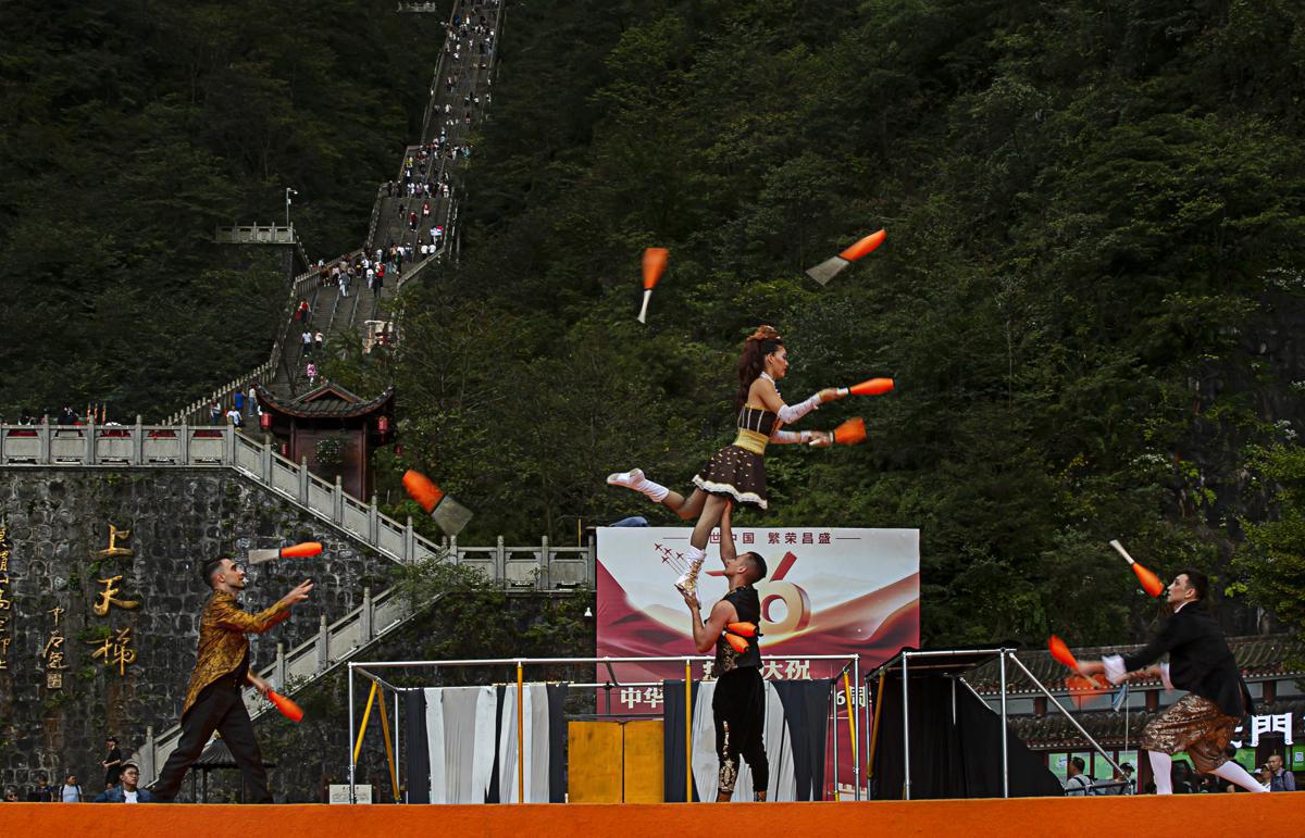 The 2025 China Zhangjiajie International New Acrobatic Theater Festival kicked off on Saturday at Zhangjiajie National Forest Park in Hunan province. The five-day event features artists and groups from 13 countries and regions. [Photo provided to chinadaily.com.cn]