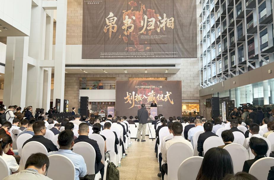 The accession ceremony of the Zidanku Silk Manuscripts (Volumes II and III) is held at the Hunan Museum in Changsha on Monday. [Photo by ZHU YOUFANG / CHINA DAILY]