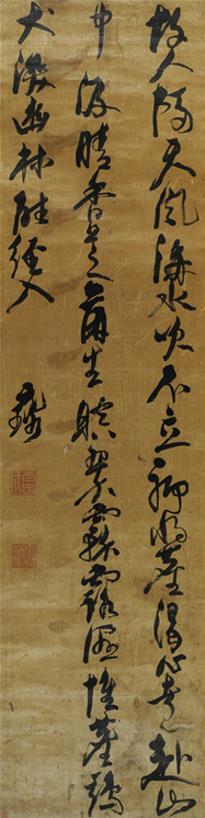 This piece of cursive script was created by Ming Dynasty (1368-1644) calligrapher Ni Yuanlu (1593–1643) from Shangyu, Zhejiang province. The text comes from a Song Dynasty (960-1279) five-character regulated verse poem. Ni's cursive script incorporated elements of ancient clerical script, forging a unique path and demonstrating a personal style both elegant and graceful. Collection: Shanxi Museum.