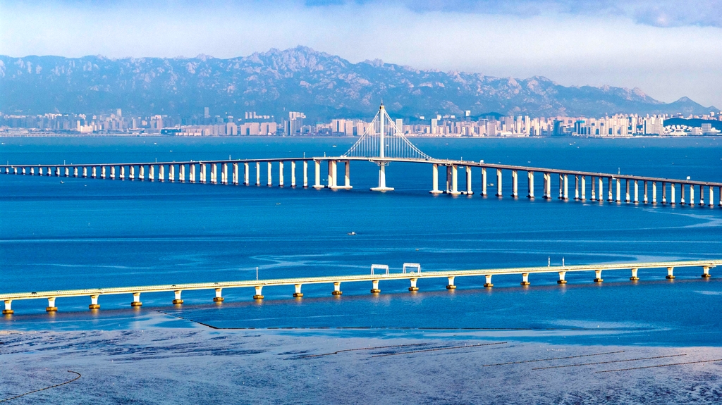 In Qingdao, Shandong province, the Qingdao Bay Bridge offers magnificent views, overlooking the blue Jiaozhou Bay. Also known as the Jiaozhou Bay Bridge, it spans from the main urban area of Qingdao, along Haier Lu, through Hongdao, and reaches the West Coast New Area in Qingdao. The bridge, which is 36.48 kilometers long, was opened to traffic on June 30, 2011.