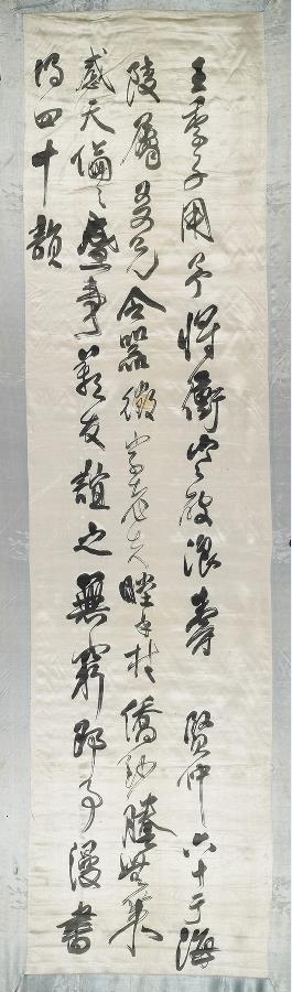 Forty-two Rhymes Wishing Longevity to Wang Xiyu, cursive script calligraphy on silk damask in 12 panels by Fu Shan, Qing Dynasty, from the collection of the Shanxi Museum [Photo/provided to chinaservicesinfo.com]