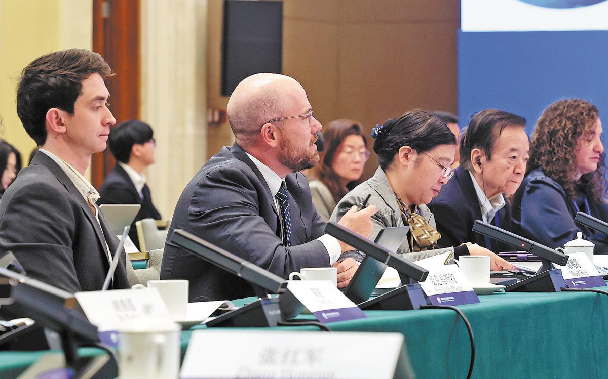 Attendees of a forum in Beijing on Thursday discuss ways to tackle climate change. WANG ZHUANGFEI/CHINA DAILY