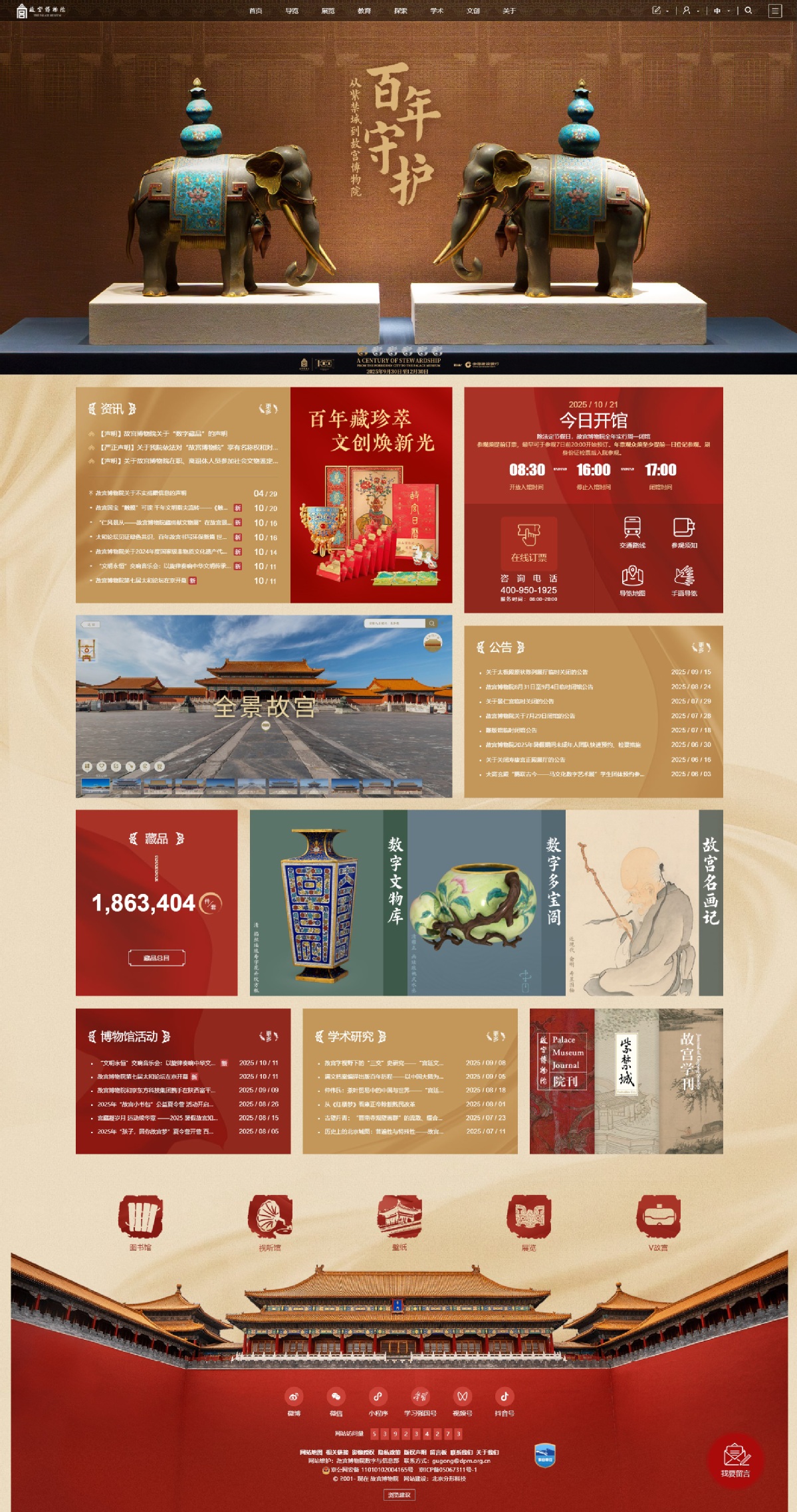 The current official website of the Palace Museum, with upgraded channels and pages to celebrate the 100th anniversary of its founding [Photo/Palace Museum official website]