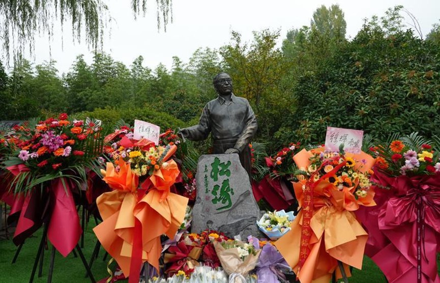 After the ceremony, attendees lingered at the site, taking photos and laying flowers before the calligrapher's statue. [Photo provided to chinadaily.com.cn]