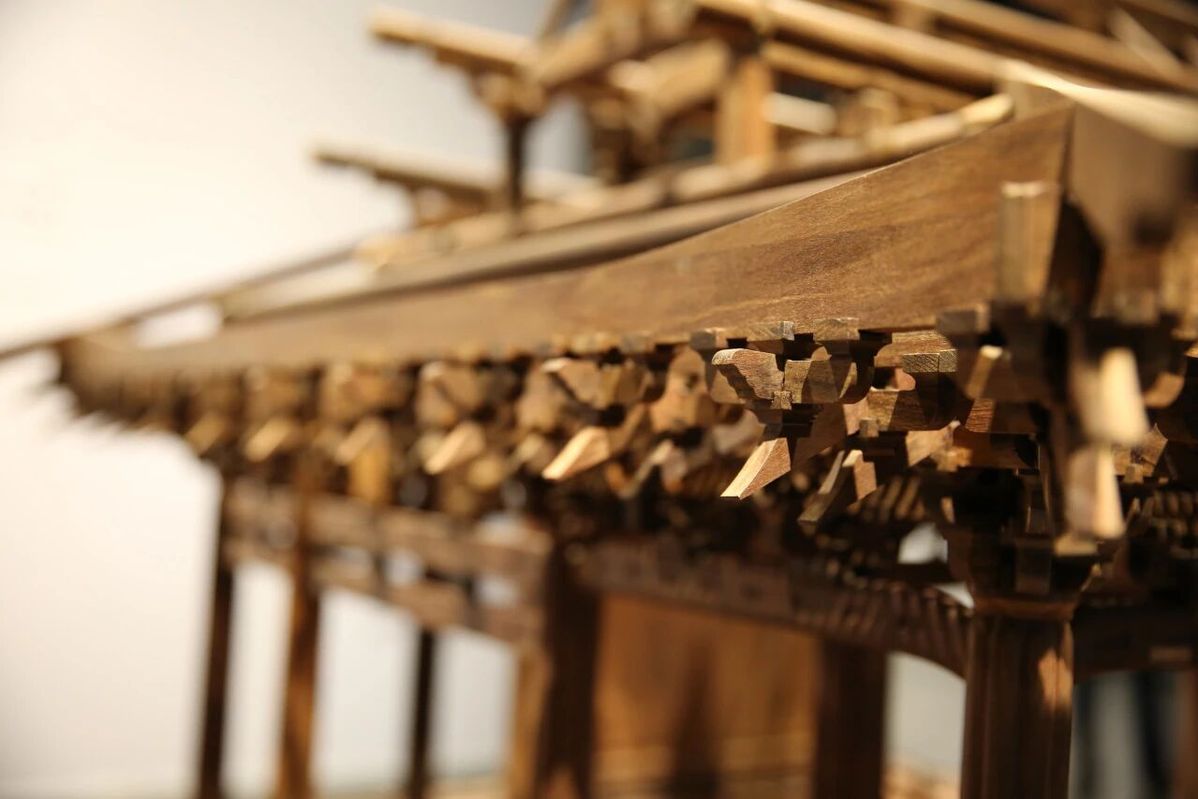 Close-up of the mortise-and-tenon joints of the Baoguo Temple's main hall model [Photo/Ningbo Museum official WeChat account]