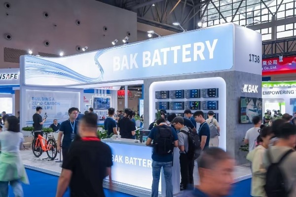 Visitors check BAK Battery's exhibits at its booth at the 23rd China International Motorcycle Trade Exhibition held from Sept 19 to 22, 2025 in Chongqing. [Photo provided to chinadaily.com.cn]