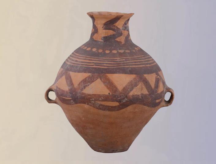 Painted pottery pot with zigzag motifs, Machang type, Neolithic period [Photo/Liaoning Provincial Museum official WeChat account]