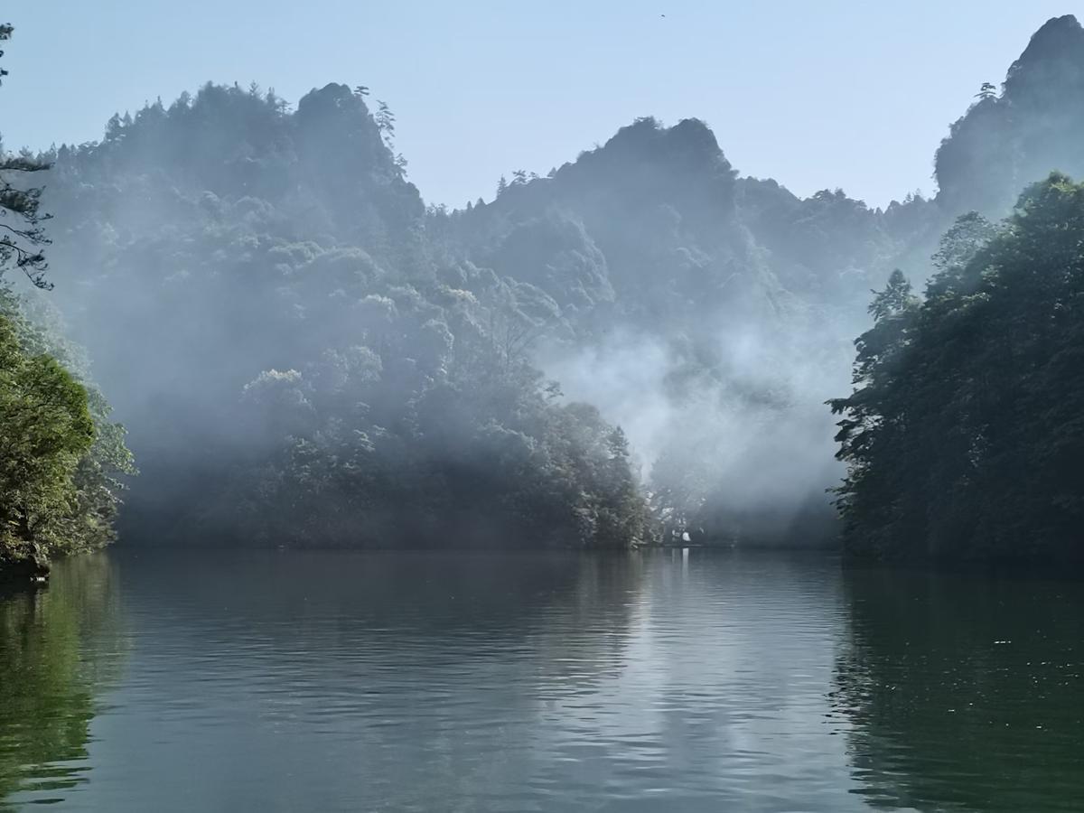 Clear skies unveil autumn splendor at Zhangjiajie's Baofeng Lake
