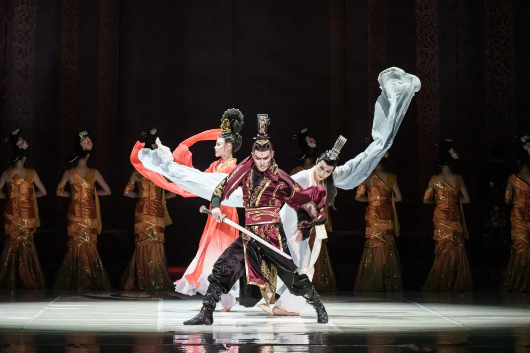 The dance drama portrays the emotional entanglements and power struggles between Cao Zhi (192-232), Cao Pi (187-226), and Zhen Mi (183-221) through mesmerizing choreography. [Photo/Official WeChat account of Shandong Grand Theatre]