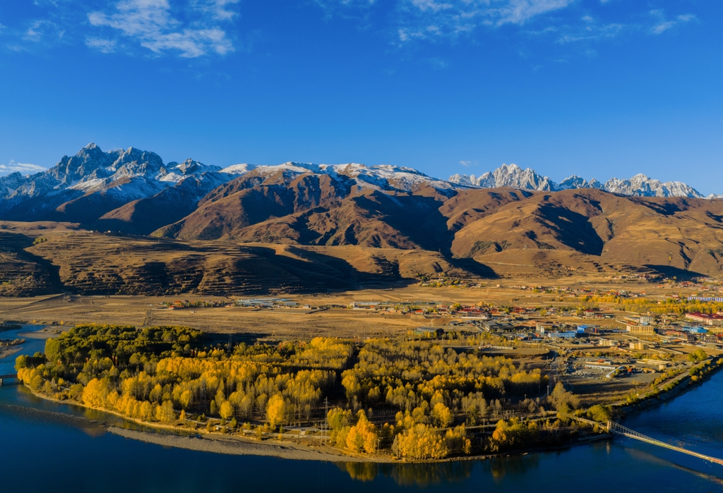 The snow-capped mountains, the blue Yalong River, and colorful forests in Garze county, Garze Tibetan autonomous prefecture, Sichuan province [Photos/IC]