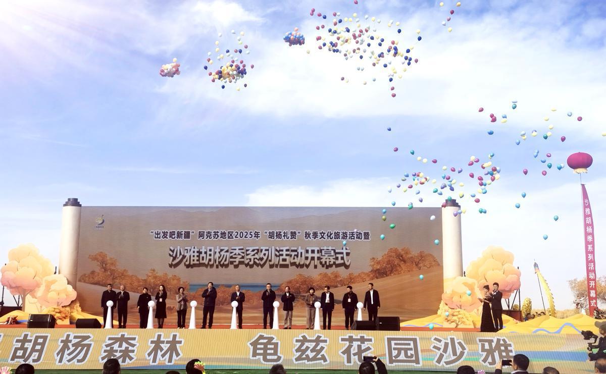 The opening ceremony of this year's Tribute to Desert Poplar autumn cultural tourism events is held on Saturday in Shaya county, Xinjiang Uygur autonomous region. [Photo by Mao Weihua/chinadaily.com.cn]