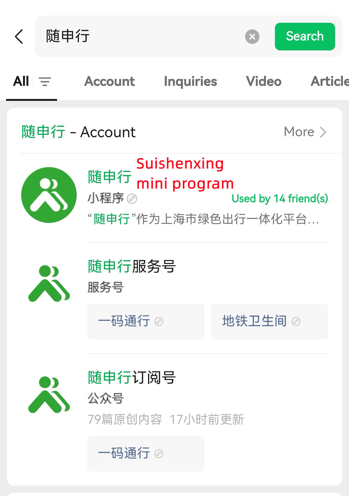Step 1:Search for the "随申行 (Suishenxing)" mini program in WeChat