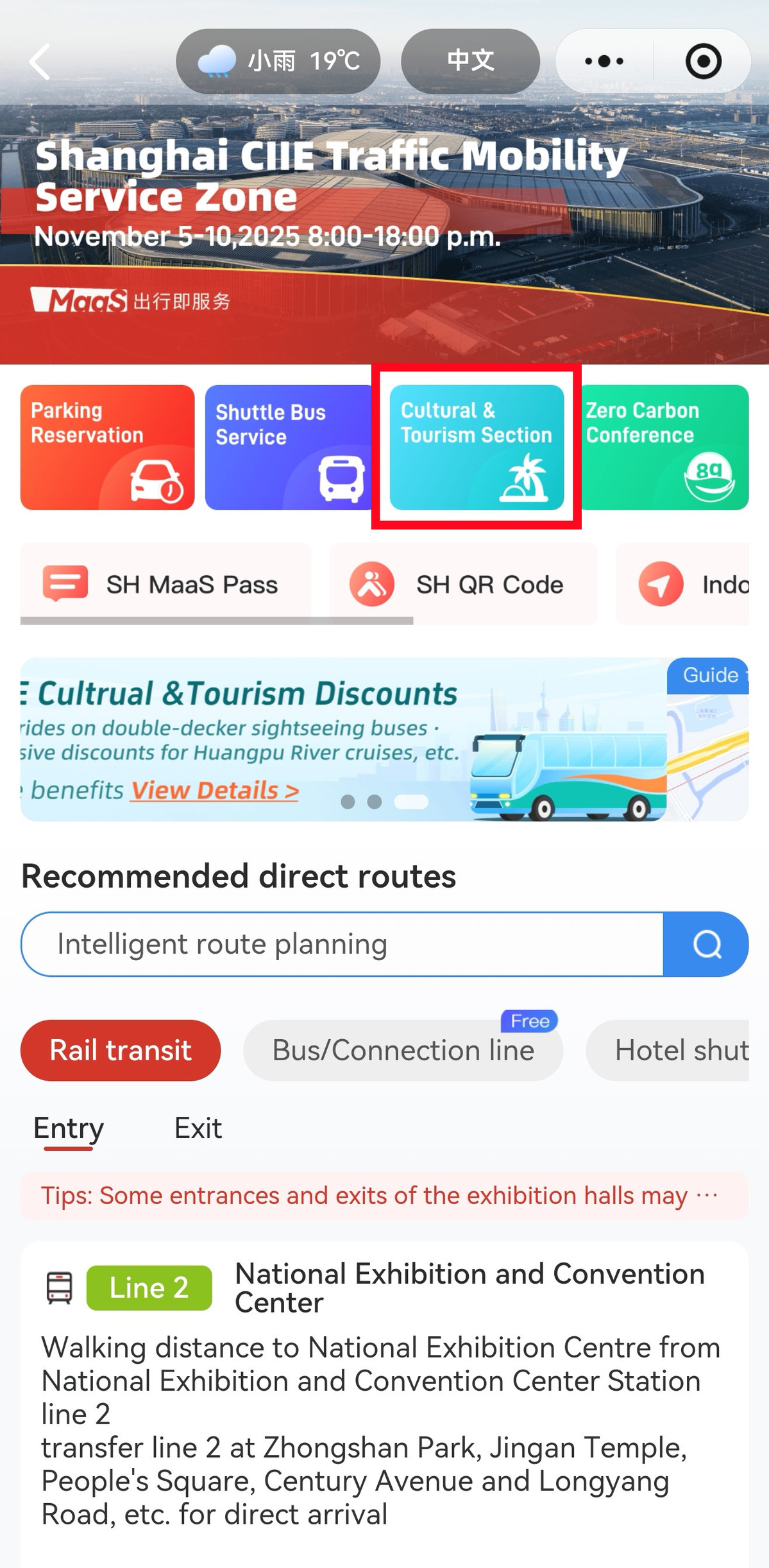 Step 2:Tap the "Shanghai CIIE Traffic Mobility Service Zone" on the homepage