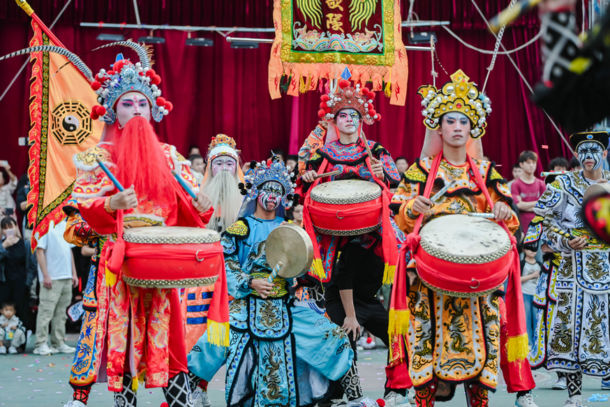 Local youths perform Yingge, a folk dance unique to the Chaoshan area on the Chongyang Festival in Chendian, Chaonan district of Shantou, South China’s Guangdong province, on Oct 29, 2025. [Photo provided to chinadaily.com.cn]