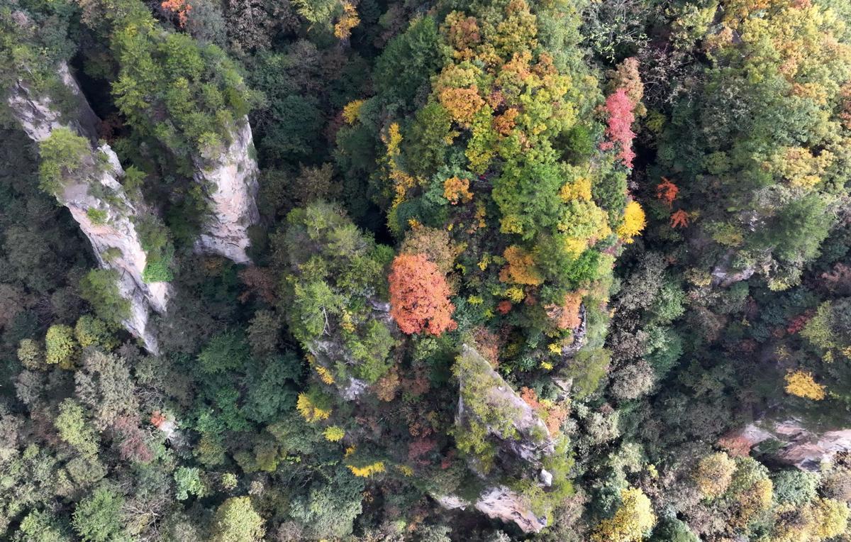 Late autumn weather recently transformed the forests covering the peaks in the Tianzi Mountain area of Zhangjiajie National Forest Park, Hunan province, into a tapestry of red, orange, and yellow. The breathtaking scenery, reminiscent of an oil painting, has captivated visitors from home and abroad.