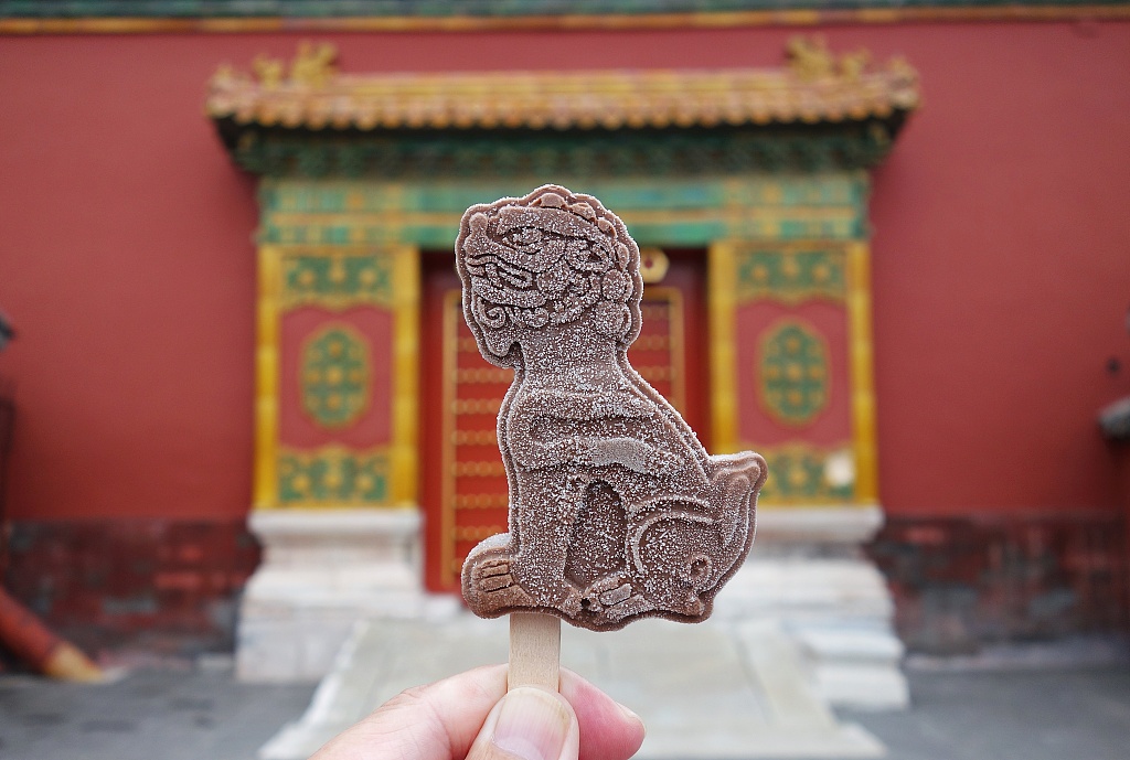 In 2019, the Palace Museum introduced an ice popsicle inspired by the glazed beast adorning the roof ridge of its historical buildings. Available in mango, chocolate, and milk flavors, these charming ice pops quickly became a hit. Visitors were eager to capture photos with them against the backdrop of the palace's majestic red architecture.