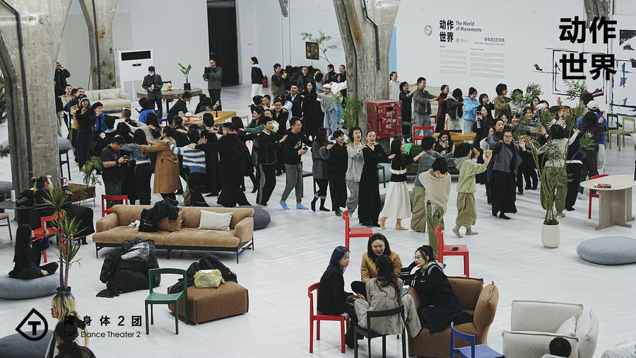 The boundary between the audience and facilitators blurs at The World of Movements—Where Body Language Comes Alive at the 798 Art Factory in Beijing, on Nov 7, 2025. [Photo provided to chinadaily.com.cn]