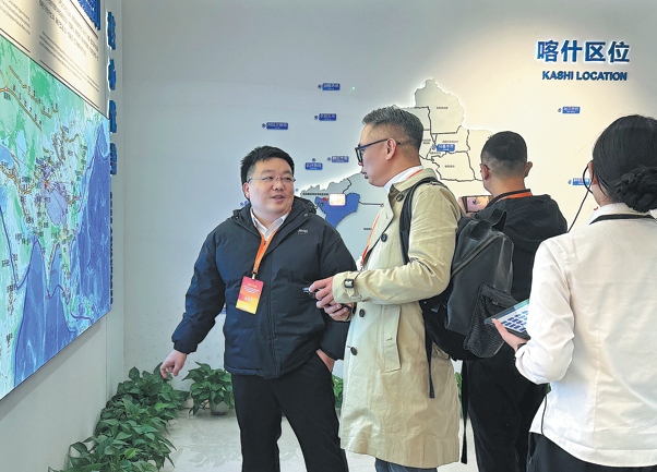 Business representatives visit the Kashgar area of the China (Xinjiang) Pilot Free Trade Zone in the Xinjiang Uygur autonomous region on Nov 7. FANG AIQING/CHINA DAILY