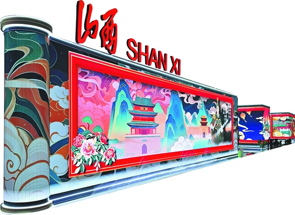 A big screen at the Shanxi pavilion showcases the province's unique attractions. [Photo by Zhang Qi/For China Daily]