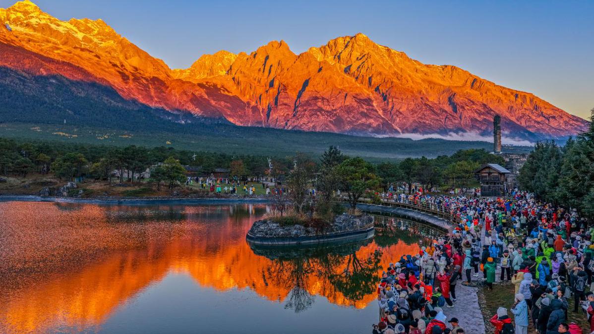 Lijiang in Yunnan province welcomes best season for viewing sunlight on golden peaks. [Photos provided to chinaservicesinfo.com]